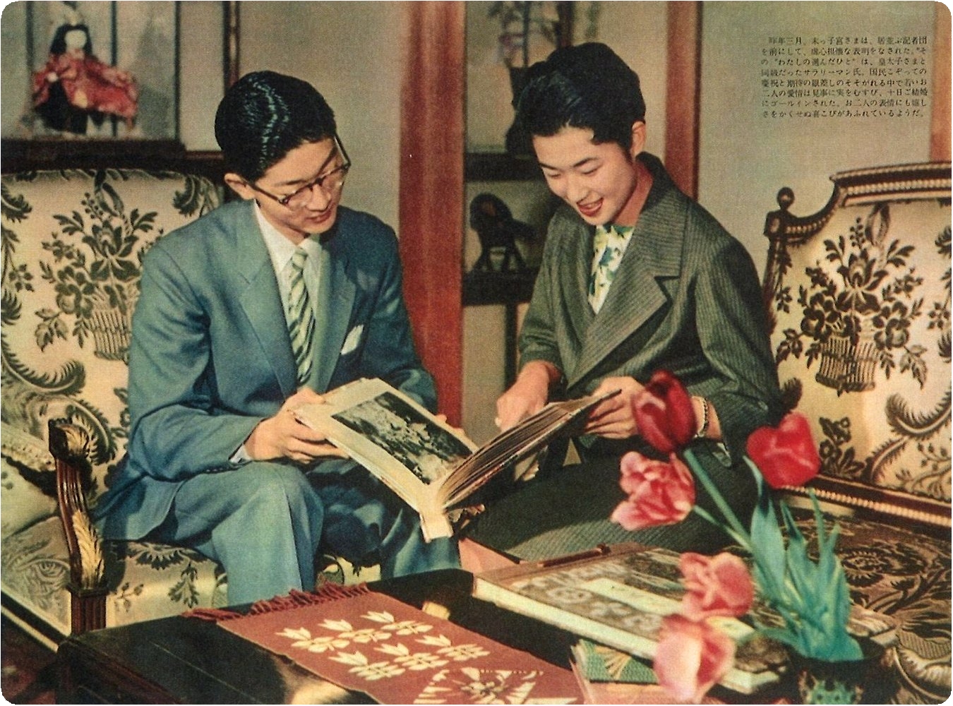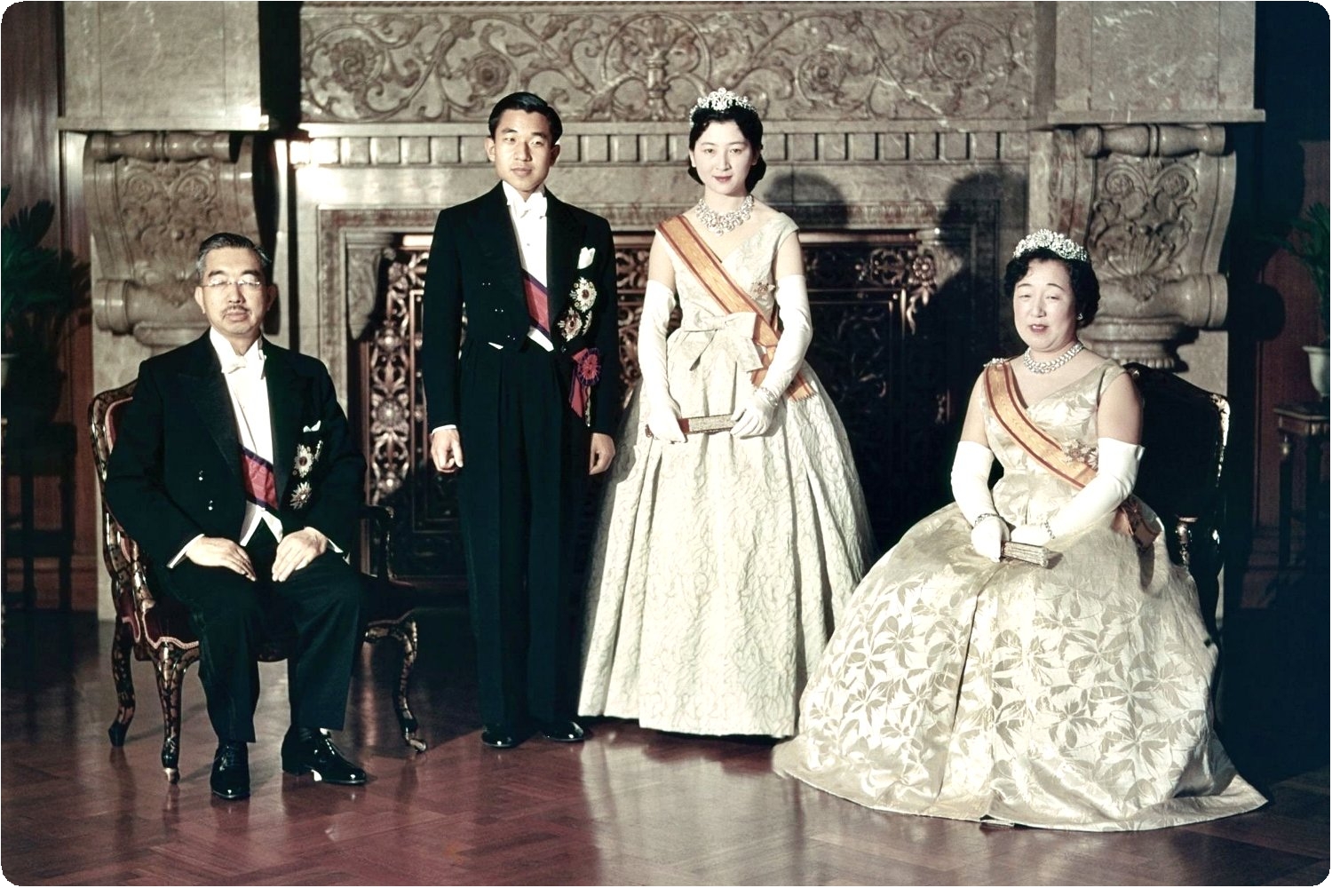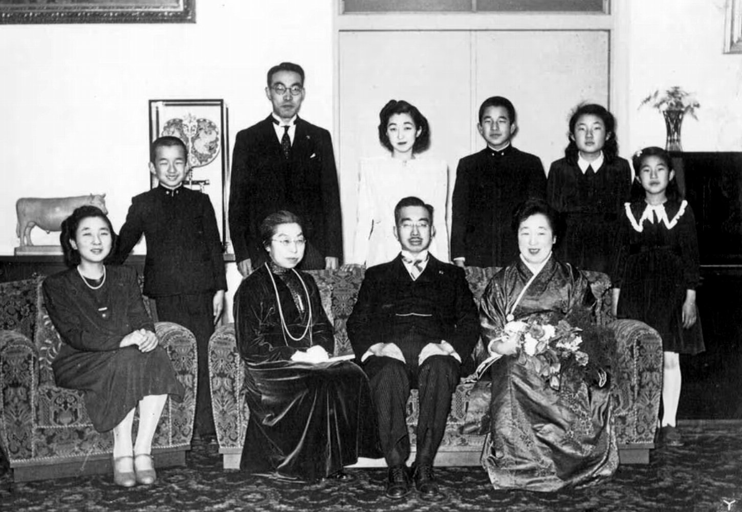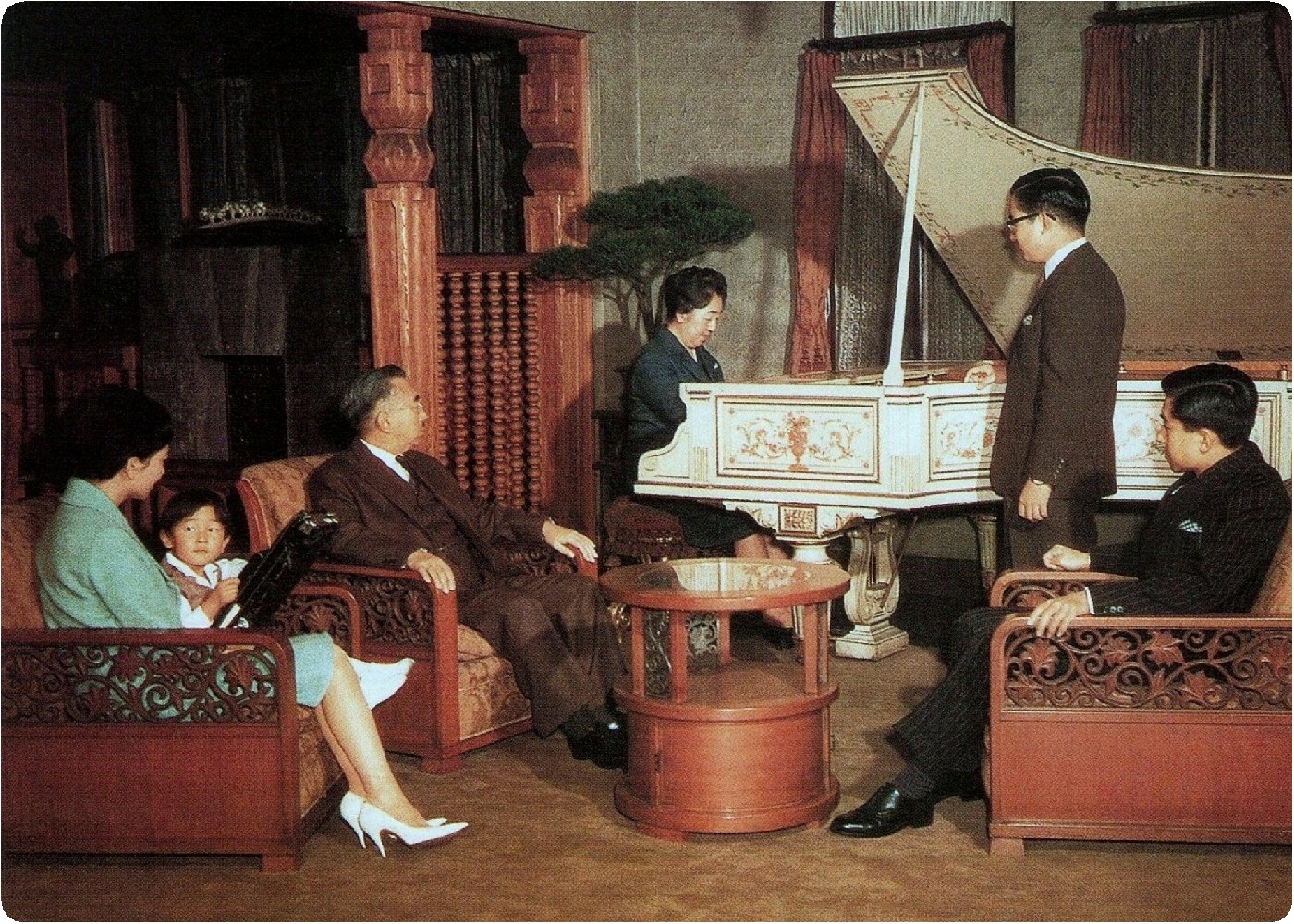 内謁見所にて昭和両陛下・照宮御揃いにて御祝を御受あり。