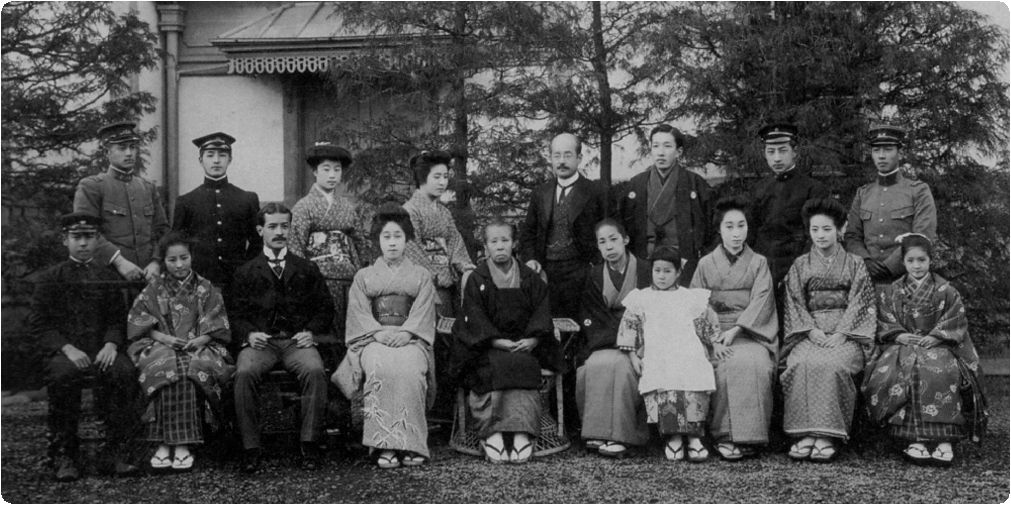 立つ右端の軍服が児玉源太郎 立つ左から4人目の白い軍服が寺内正毅伯爵