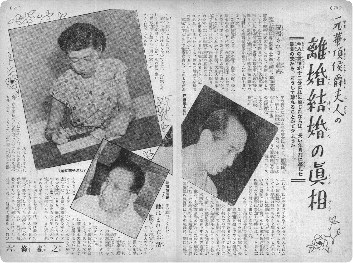 華頂様の離婚を新聞で見た時、私はすぐ別れた夫の戸田が一役買っているに違いないと思いました。